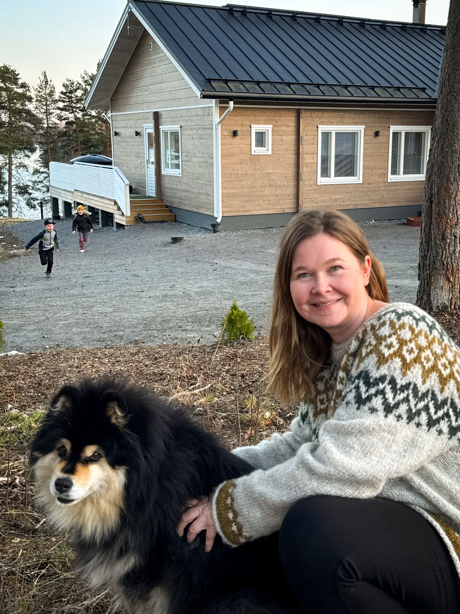 Äiti Hanne-Mari, isä Tomi, 7- ja 9-vuotiaat lapset sekä suomenlapinkoira Hilla. Muutettiin Vuolenkoskelle 2021. Meille Vuolenkoski on just oikea paikka asua ja elää. Täällä on rauhallista ja turvallista. Ilma tuoksuu raikkaalle ja vuodenajat tuntuu ihan eri tavalla – syksyllä satelee kunnolla, talvi tuntuu valkoisemmalta ja kevät puhkeaa metsänreunassa silmien edessä.